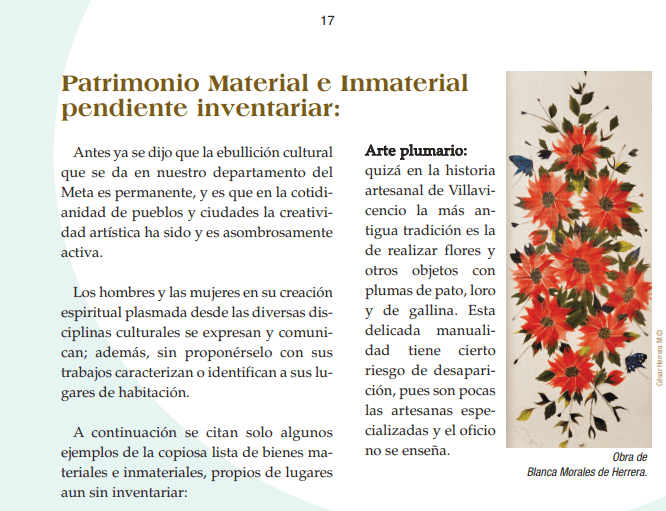 En la página # 17 del documento hice alusión del villavicense Arte Plumario con la siguiente alerta: