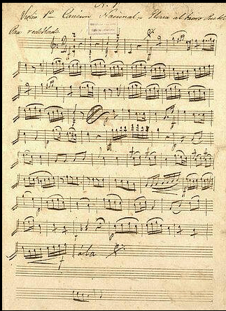 Así es que la alegría y el placer se apoderaron de mi alma, concurriendo la casualidad de ser uno de mis socios apasionado a la música: su inclinación le obligó a tomar la flauta para ejecutar la canción de Caracas Gloria al bravo pueblo, etc. y al resonar del suave instrumento unieron sus voces los que sabían la letra e hicieron sentir ecos los de la libertad a los bogas, interrumpiéndolos por largo intervalo que a continuación su ejercicio y produciendo en mi corazón emociones tiernas.” p.156 (1).