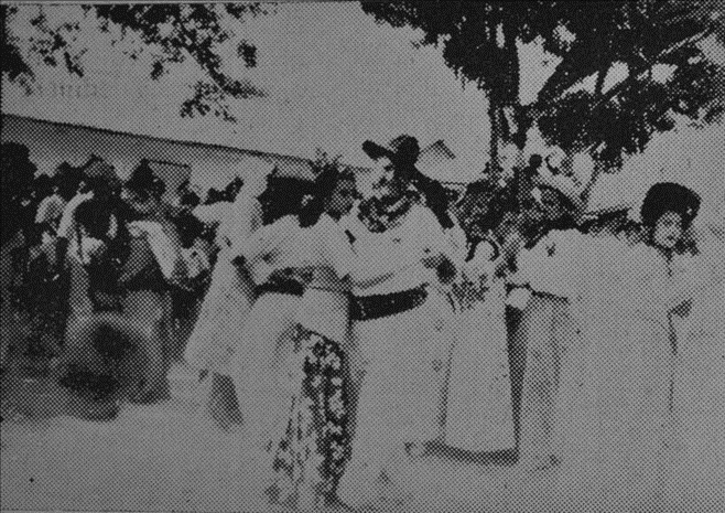 Corre el aguardiente de estrellas líquidas y se desencadena, febril y apasionada, casi furiosa y loca, la música, palpita el rítmico zapateo de los danzantes vertiginosos: