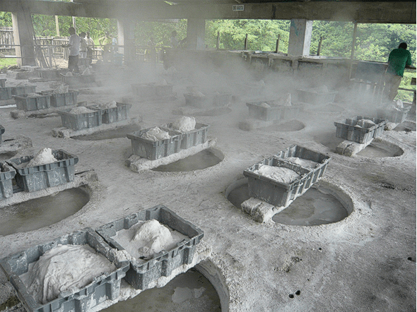 De esta manera la familia Guayupe moradora del sector inicia la obtención del mineral básico para su dieta alimenticia. Evidencia de tales trabajos son los fragmentos de vasijas cerámicas que con frecuencia se encuentran dentro de la actual planta. En 1984 la antropóloga Mariane Cardale practicó una rápida inspección arqueológica al lugar que le permitió plantear la tesis de que allí pudo haber sido punto de intercambio del producto en terrón con culturas andinas.