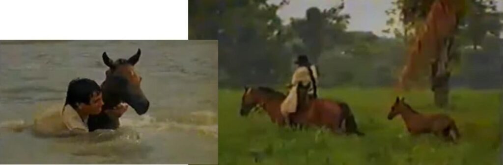 Entre mis aventuras en algún momento yo había montado a caballo y no lo hacía nada mal. Esta experiencia me sirvió de mucho. También sabía nadar bien. Otra habilidad que me facilitó hacer un buen rol en la película. Durante veinte días estuve al lomo de una yegua y arriando un potrillo.
